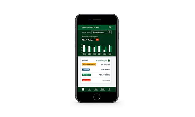 Permite realizar el seguimiento de los indicadores de tu producción, con datos detallados sobre el procedimiento y los pacientes, consultar recibos y extractos de pago directamente en la app y descargar lo que necesites.